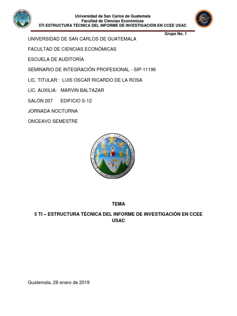 Universidad De San Carlos De Guatemala Facultad De Ciencias Economicas 5ti Estructura Tecnica Del Informe De Investigacion En Ccee Usac Grupo No 1 Teoria Science