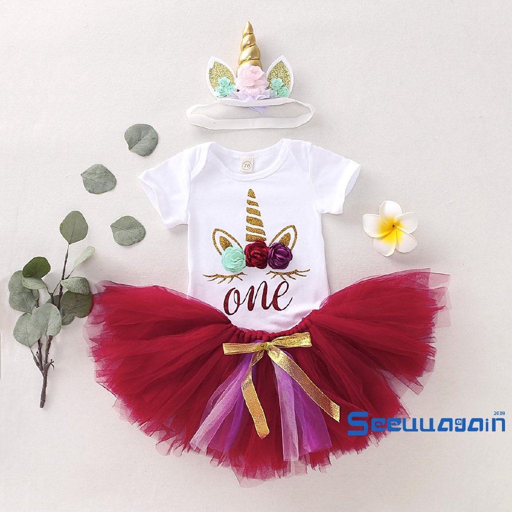 Hihcbf 1st Birthday Cake Smash 3pcs Outfits Baby Girls Romper Tutu Skirt Headband Princess Skirt Set For Photo Shoot Buy Online In India At Desertcart